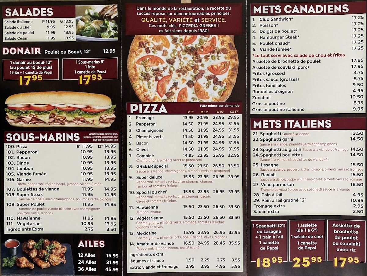 If you're craving delicious pizza and savory shawarma, then the Greber Pizza And Shawarma Menu is a must-try. Located at 761 Boulevard Saint-Joseph in Gatineau, Quebec, this spot offers a perfect blend of classic and bold flavors that cater to every taste. Whether you're in the mood for a crispy, cheesy pizza loaded with your favorite toppings or a perfectly spiced shawarma wrapped in warm, soft pita, there's something here for everyone.